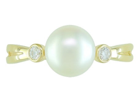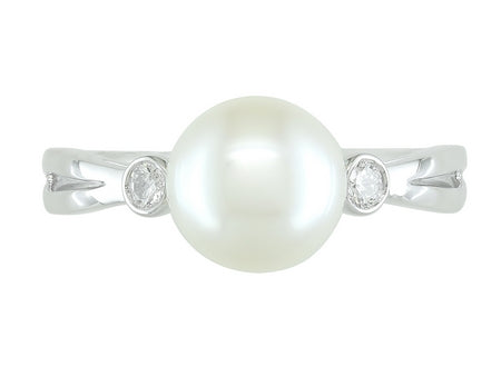 14K White Gold Pearl with Bezel Set Diamond Accent Ring