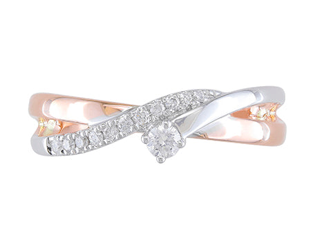 10K Two Toned White & Rose Gold Crossover Diamond Ring