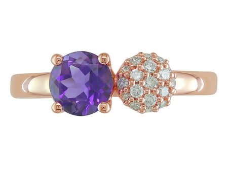 14K Rose Gold Amethyst & Diamond Pave Ball Ring