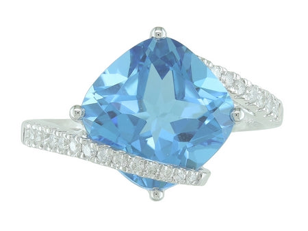 14K White Gold Blue Topaz & Diamond Bypass Ring