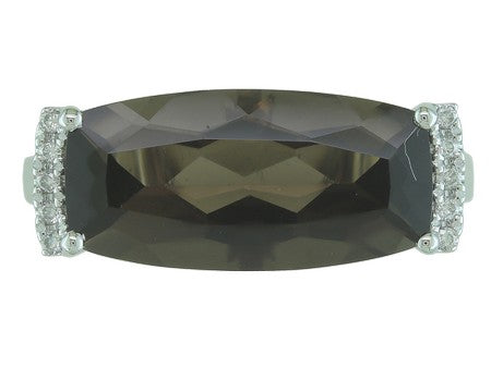 14K White Gold Smokey Quartz with Diamond Accent Ring