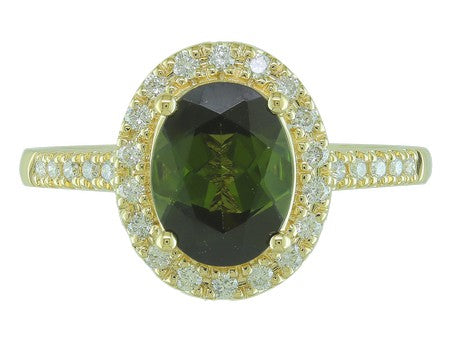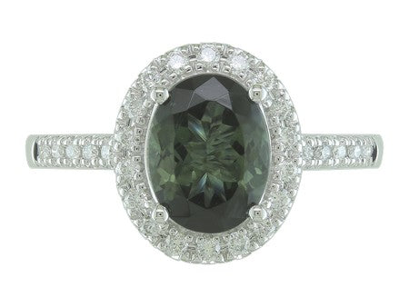 14K White Gold Green Tourmaline & Diamond Halo Ring