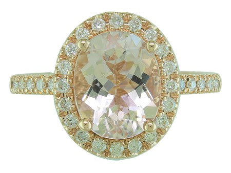 14K Rose Gold Morganite with Diamond Halo Ring