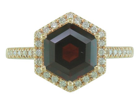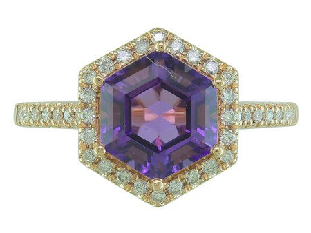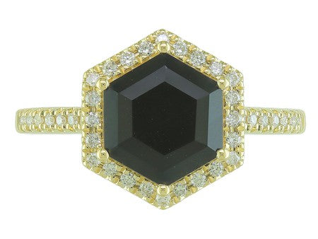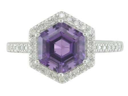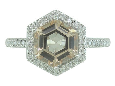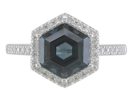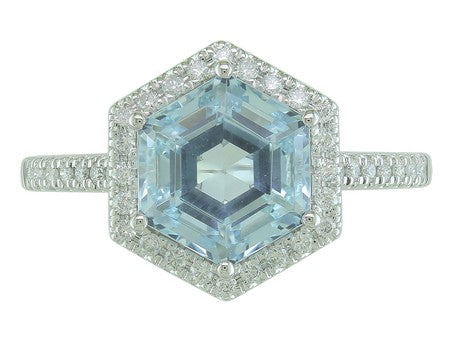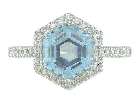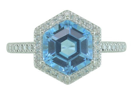 14K White Gold Hexagon London Blue Topaz with Diamond Halo Ring