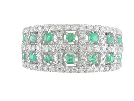 14K White Gold Emerald & Diamond Cross Hatch Ring