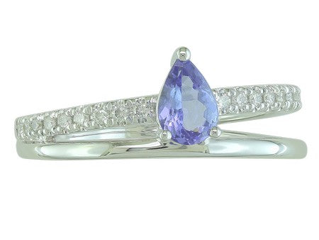 14K White Gold Tanzanite & Diamond Asymmetrical Ring