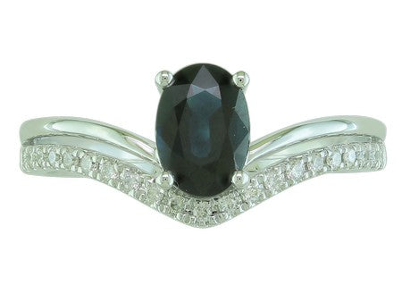 14K White Gold Sapphire & Diamond Art Deco Ring