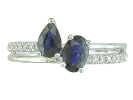 14K White Gold Sapphire & Diamond Asymmetrical Ring