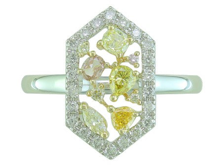 14K Yellow & White Gold Fancy Color Diamond Cluster Ring
