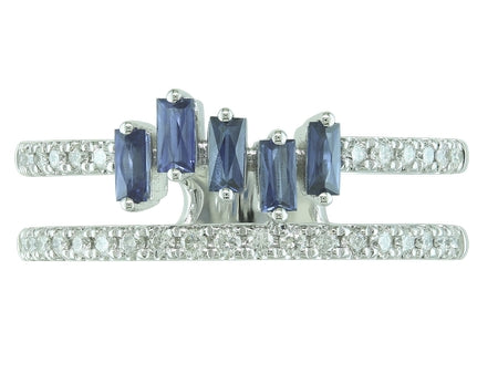 14K White Gold Sapphire & Diamond Stacked Look Ring
