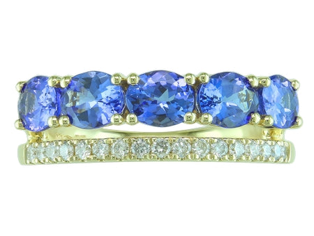 14K Yellow Gold Ruby & Diamond Stacked Look Ring