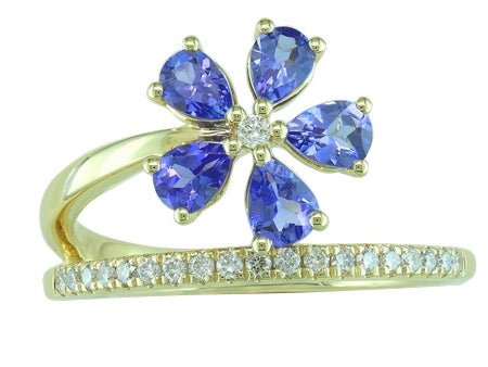 14K Yellow Gold Tanzanite & Diamond Flower Ring
