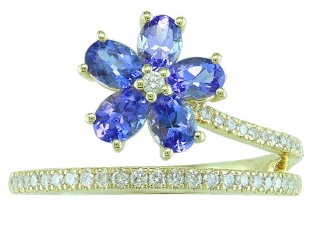 14K Yellow Gold Tanzanite & Diamond Flower Ring