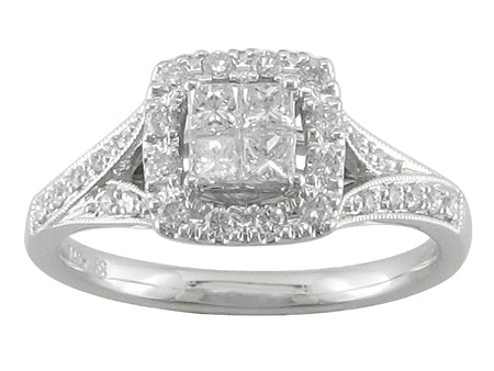 18K White Gold Quad Diamond Center with Halo Engagement Ring