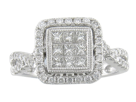 14K White Gold Cluster Diamond Center with Halo Engagement Ring