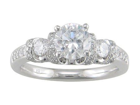 14K White Gold Three Stone Diamond Semi Mount Engagement Ring
