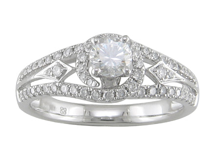 14K White Gold Split Shank Diamond Halo Semi Mount Engagement Ring