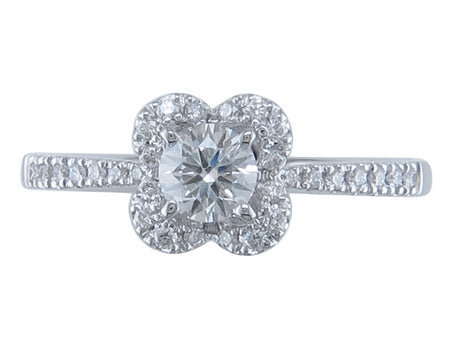 14K White Gold Diamond Floral Halo Semi Mount Engagement Ring