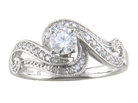 14K White Gold Milgrain Bypass Diamond Engagement Ring