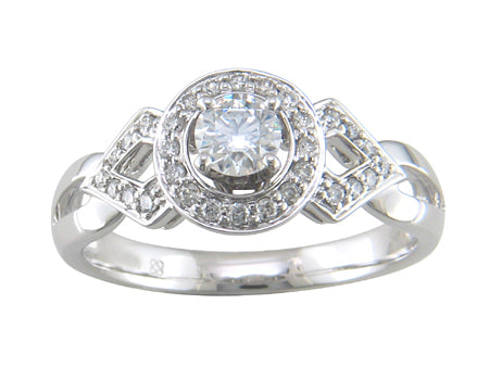 14K White Gold Diamond Halo Geometric Accent Semi Mount Engagement Ring
