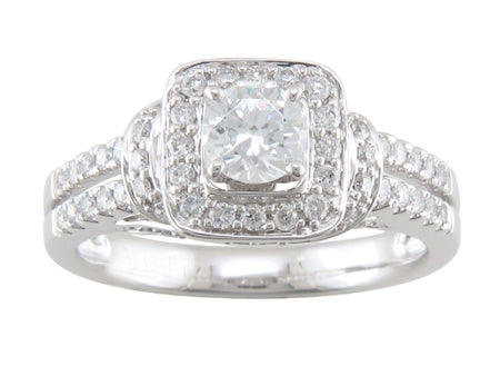 14K White Gold Diamond Halo Semi Mount Engagement Ring