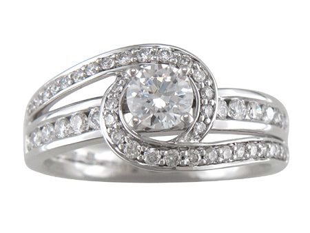 14K White Gold Split Shank Diamond Bypass Semi Mount Engagement Ring