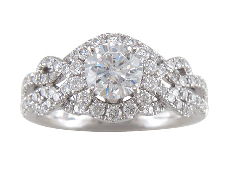 14K White Gold Split Shank Diamond Halo Semi Mount Engagement Ring