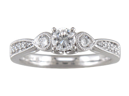 14K White Gold Milgrain Semi Mount Engagement Ring