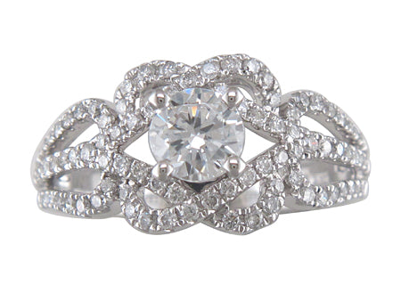 14K White Gold Diamond Floral Halo Semi Mount Engagement Ring