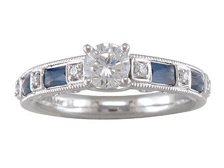 14K White Gold Sapphire & Diamond Semi Mount Engagement Ring