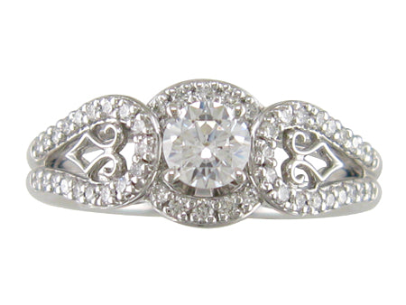 14K White Gold Split Shank Diamond Halo Semi Mount Engagement Ring