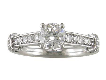14K White Gold Milgrain Diamond Semi Mount Engagement Ring