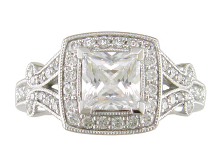 14K White Gold Milgrain Diamond Halo Semi Mount Engagement Ring