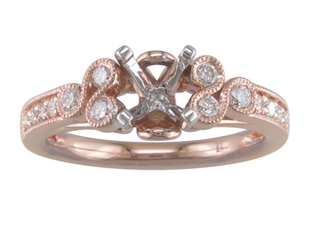 14K White Gold Milgrain Swirl Diamond Semi Mount Engagement Ring