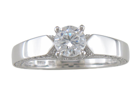 14K White Gold Milgrain Diamond Geometric Semi Mount Engagement Ring