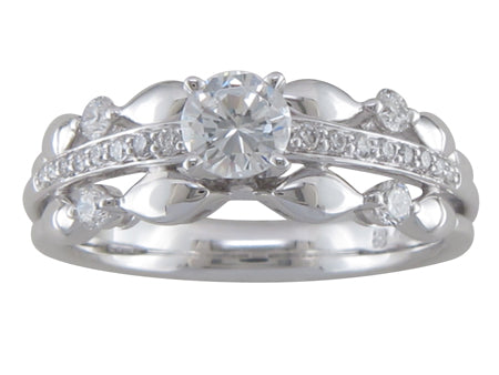 14K White Gold Stacked Look Diamond Semi Mount Engagement Ring