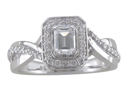 14K White Gold Bypass Diamond Halo Semi Mount Engagement Ring