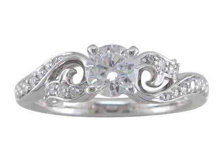14K White Gold Swirl Diamond Semi Mount Engagement Ring