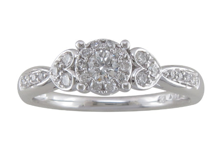 14K White Gold Diamond Halo Heart Accent Engagement Ring