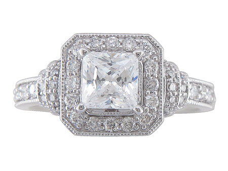 14K White Gold Diamond Halo Semi Mount Engagement Ring