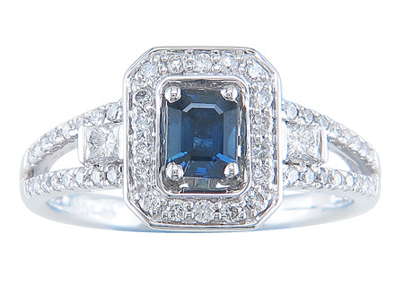 14K White Gold Sapphire & Diamond Halo Engagement Ring