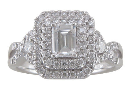 14K White Gold Split Shank Diamond Double Halo Engagement Ring