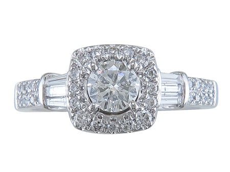 14K White Gold Diamond Halo Engagement Ring