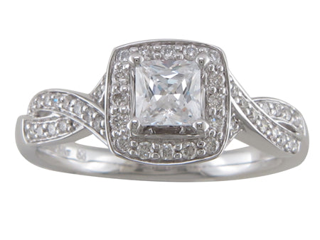14K White Gold Twist Diamond Halo Semi Mount Engagement Ring