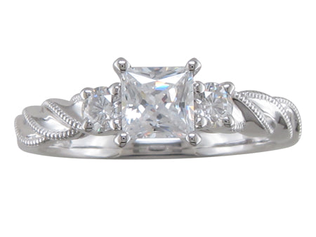 14K White Gold Vintage Twist Diamond Semi Mount Engagement Ring