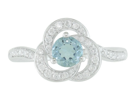 14K White Gold Aquamarine & Diamond Twist Engagement Ring