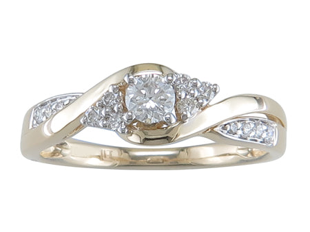 10K Yellow & White Gold Petite Diamond Engagement Ring