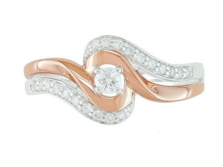 14K Two Tone White & Rose Gold Bypass Diamond Engagement Ring