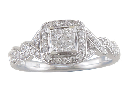 10K White Gold Twist Quad Set Diamond Engagement Ring