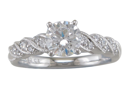 14K White Gold Milgrain Twist Diamond Semi Mount Engagement Ring